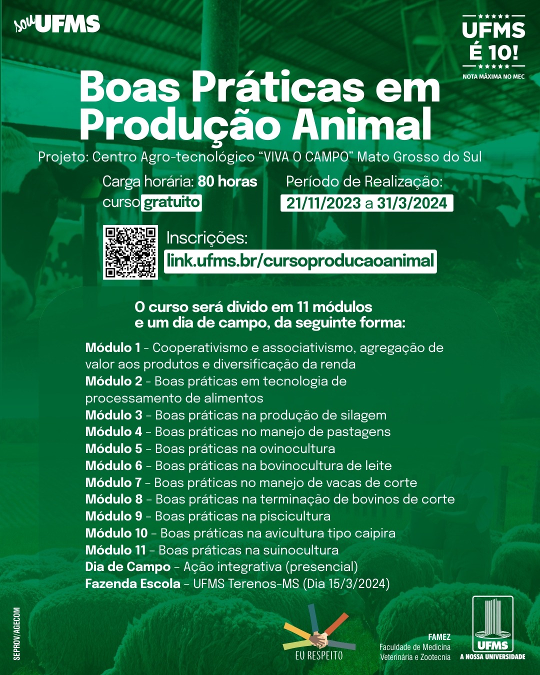Inscrições: link.ufms.br/cursoproducaoanimal