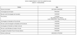 Cronograma do Processo Seletivo