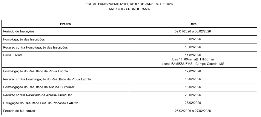 Período de inscrições de 09 de janeiro de 2026 até 06 de fevereiro de 2026 para o Processo Seletivo para a Primeira Turma da Residência Agrícola em Gestão de Custos Agropecuários da FAMEZ/UFMS/TERRA Desenvolvimento Agropecuário – 2026